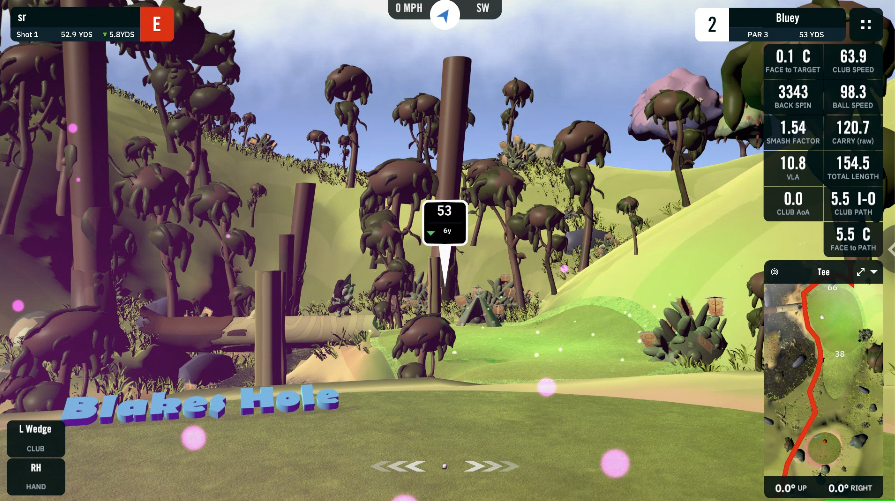 Conçu par le designer Guy Holman, le terrain Bluey sur GSPro est un parcours 18 trous coloré, farfelu et rempli de références à la série. Les personnages, les décors, les Easter eggs. Les enfants qui connaissent Bluey vont reconnaître l'univers immédiatement.